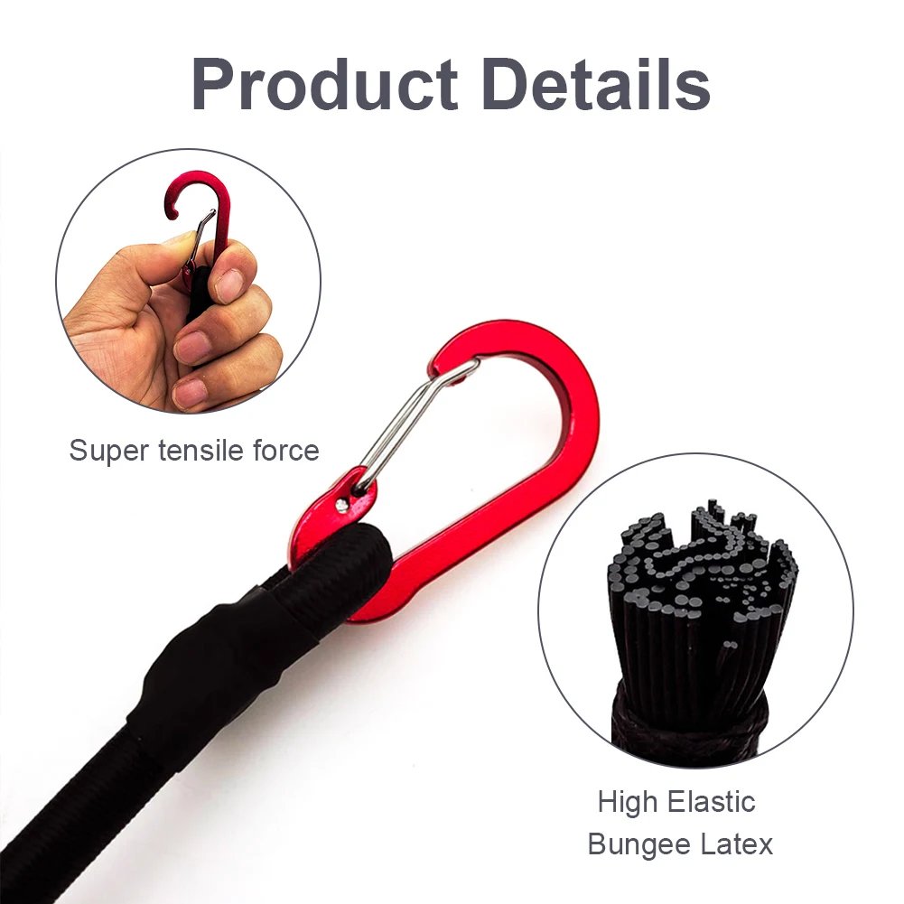 Heavy Duty Bungee Cord Aluminum Alloy Elastic Tie Strap String Carabiner Hooks Cord Elastic Rope for Luggage Rack Cargo