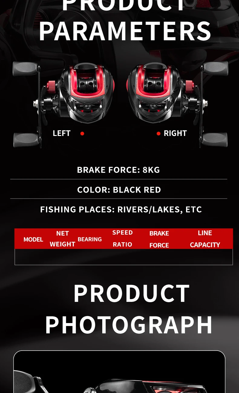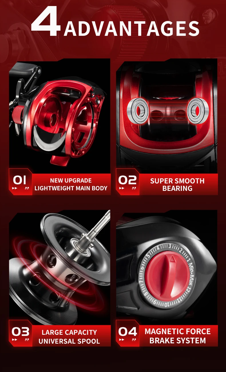 High-Speed Baitcasting Reel Lightweight Nylon Frame, Magnetic Brake