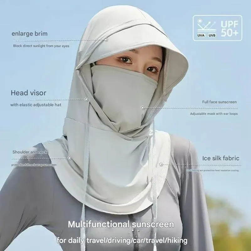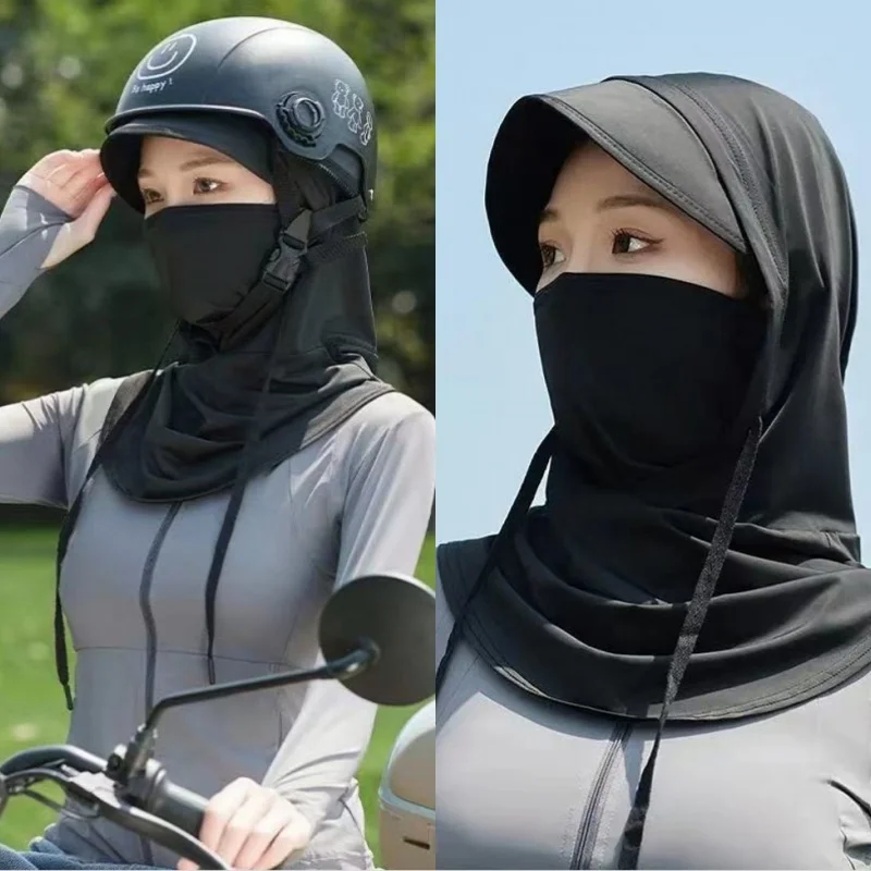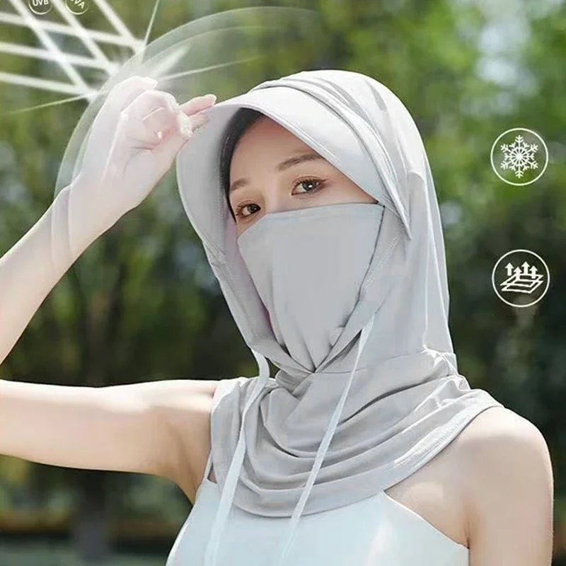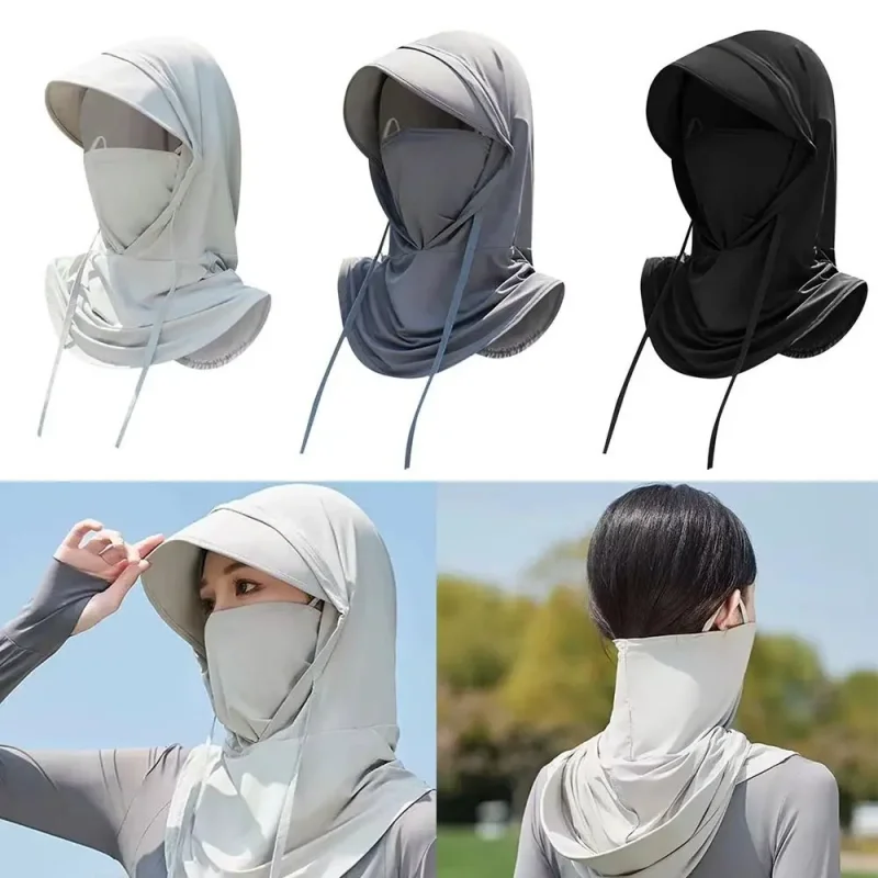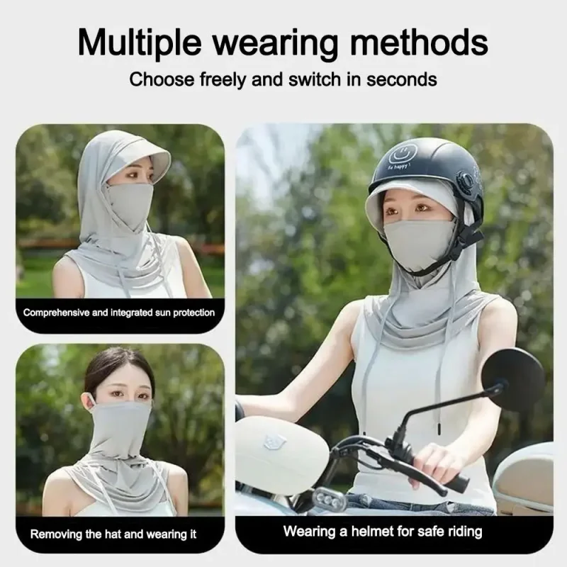 Summer 360 Full Face Sun Protection Mask. Hat Ice Silk Anti-UV Fishing Cycling Hood Neck Mask Covers Integrated Sunhat