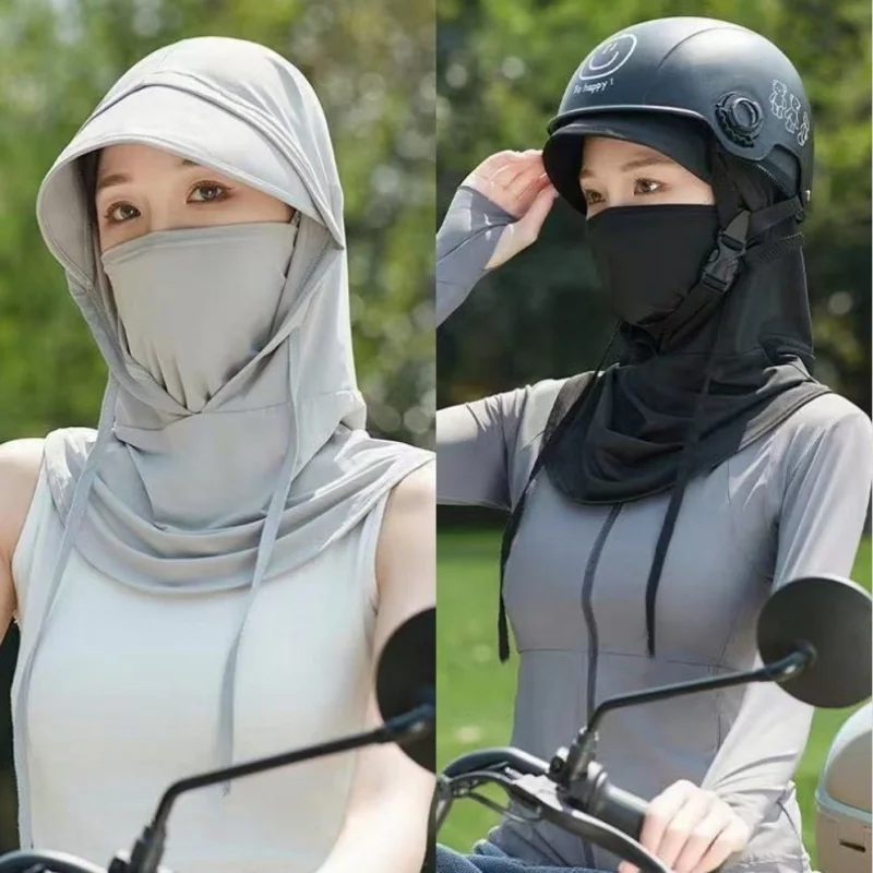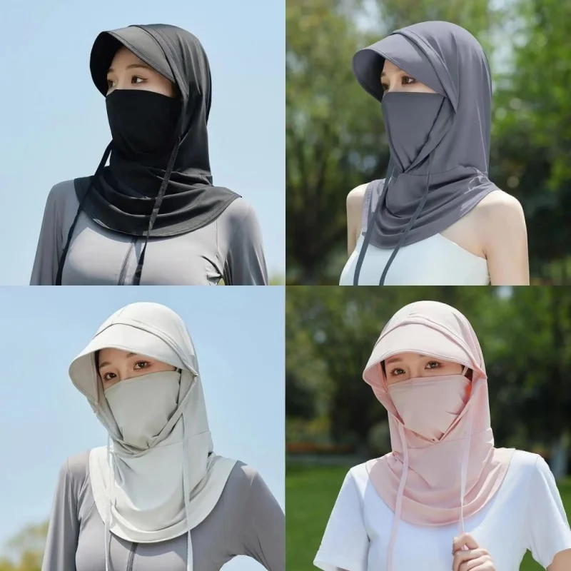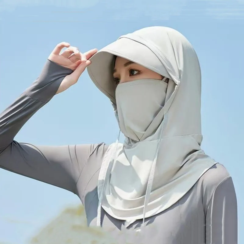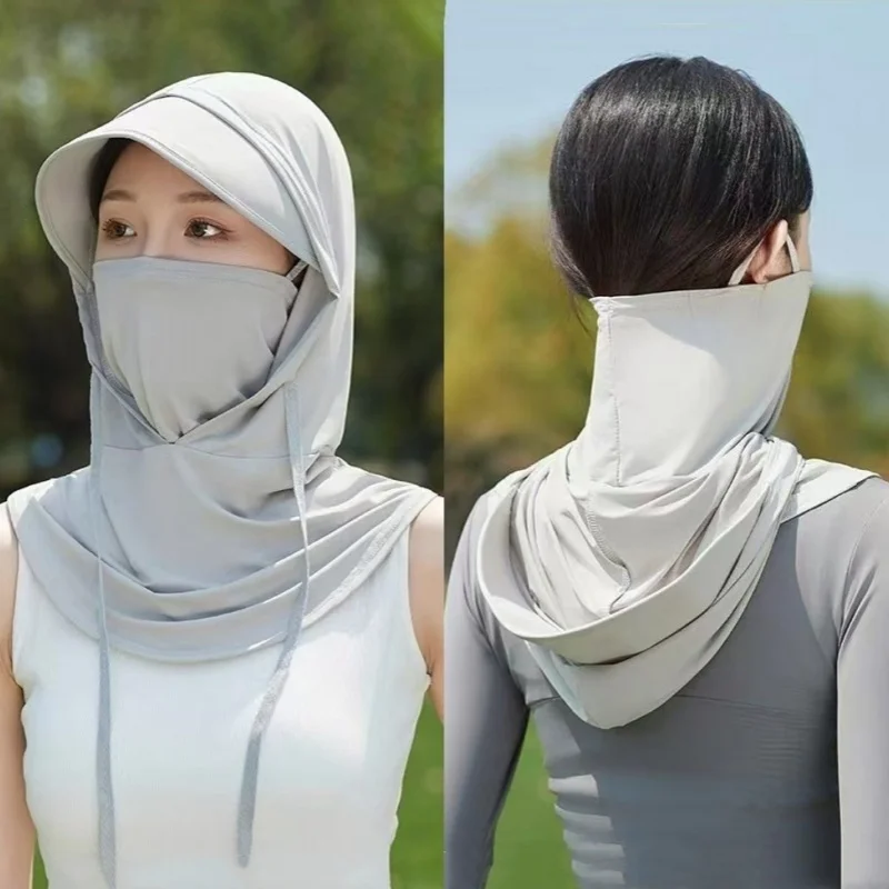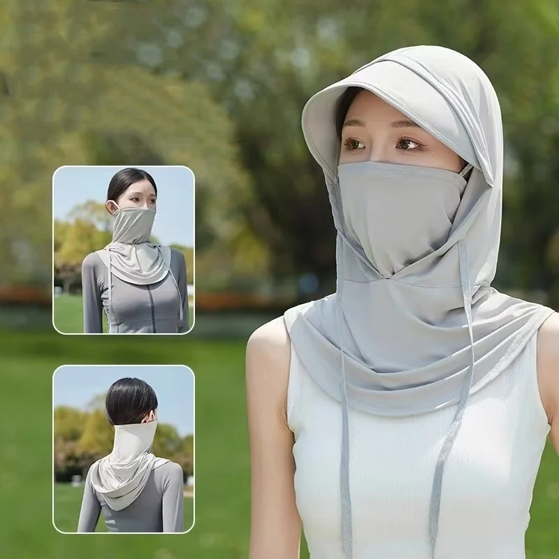 Summer 360 Full Face Sun Protection Mask. Hat Ice Silk Anti-UV Fishing Cycling Hood Neck Mask Covers Integrated Sunhat