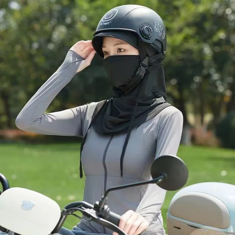 This summer-ready face mask offers comprehensive UV protection, ideal for outdoor activities like driving or cycling.