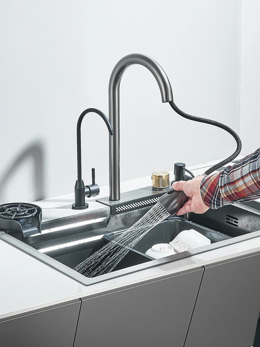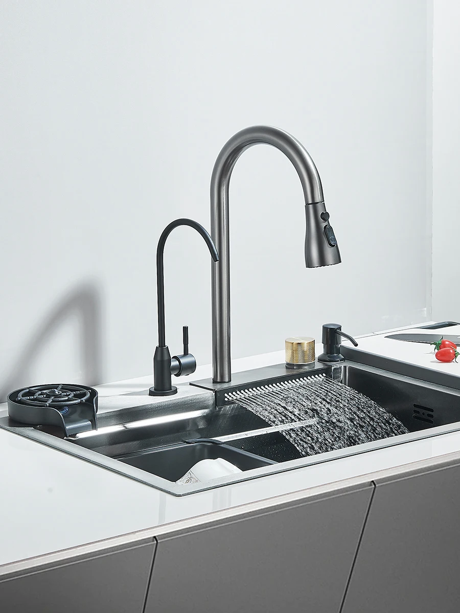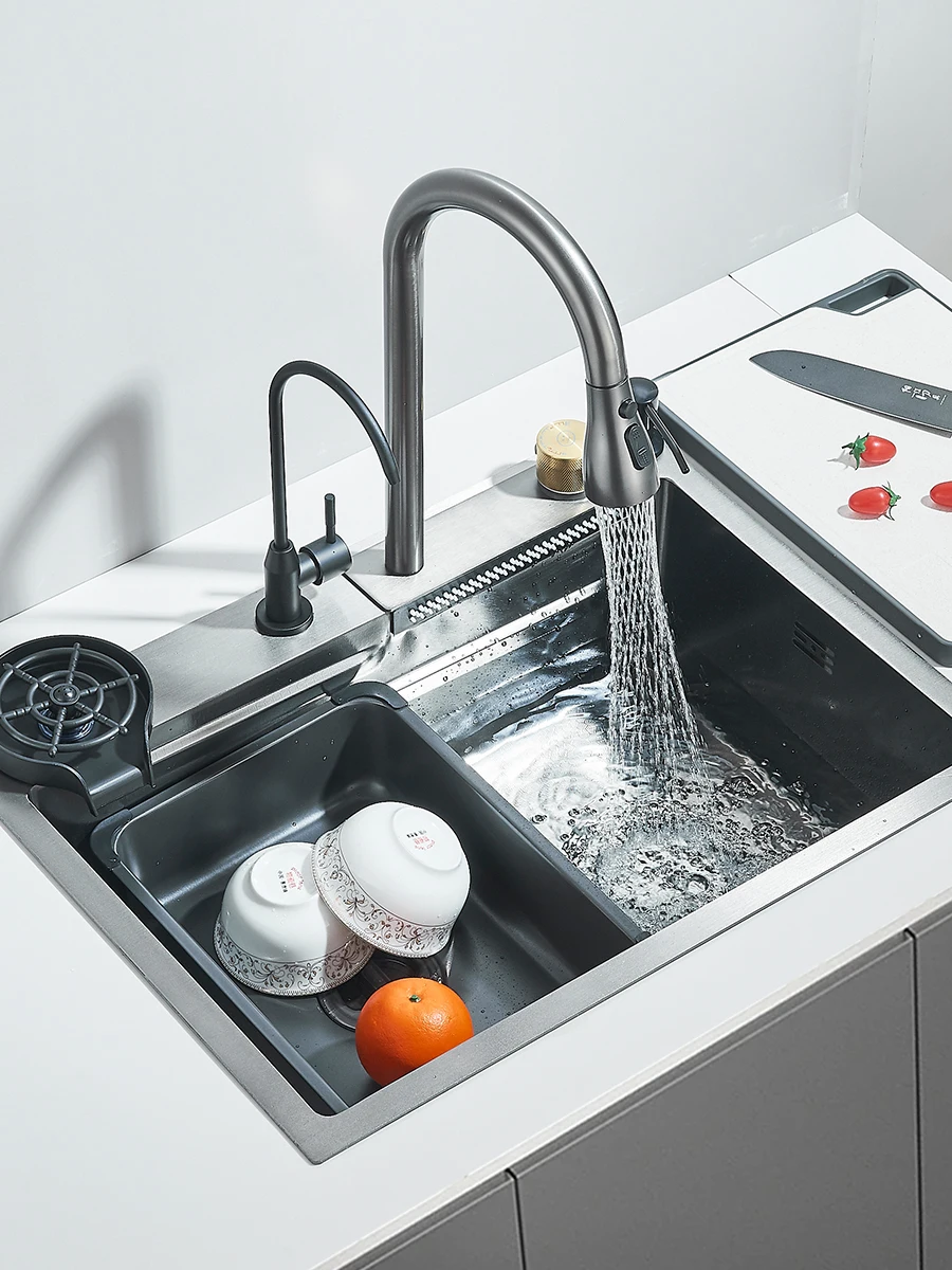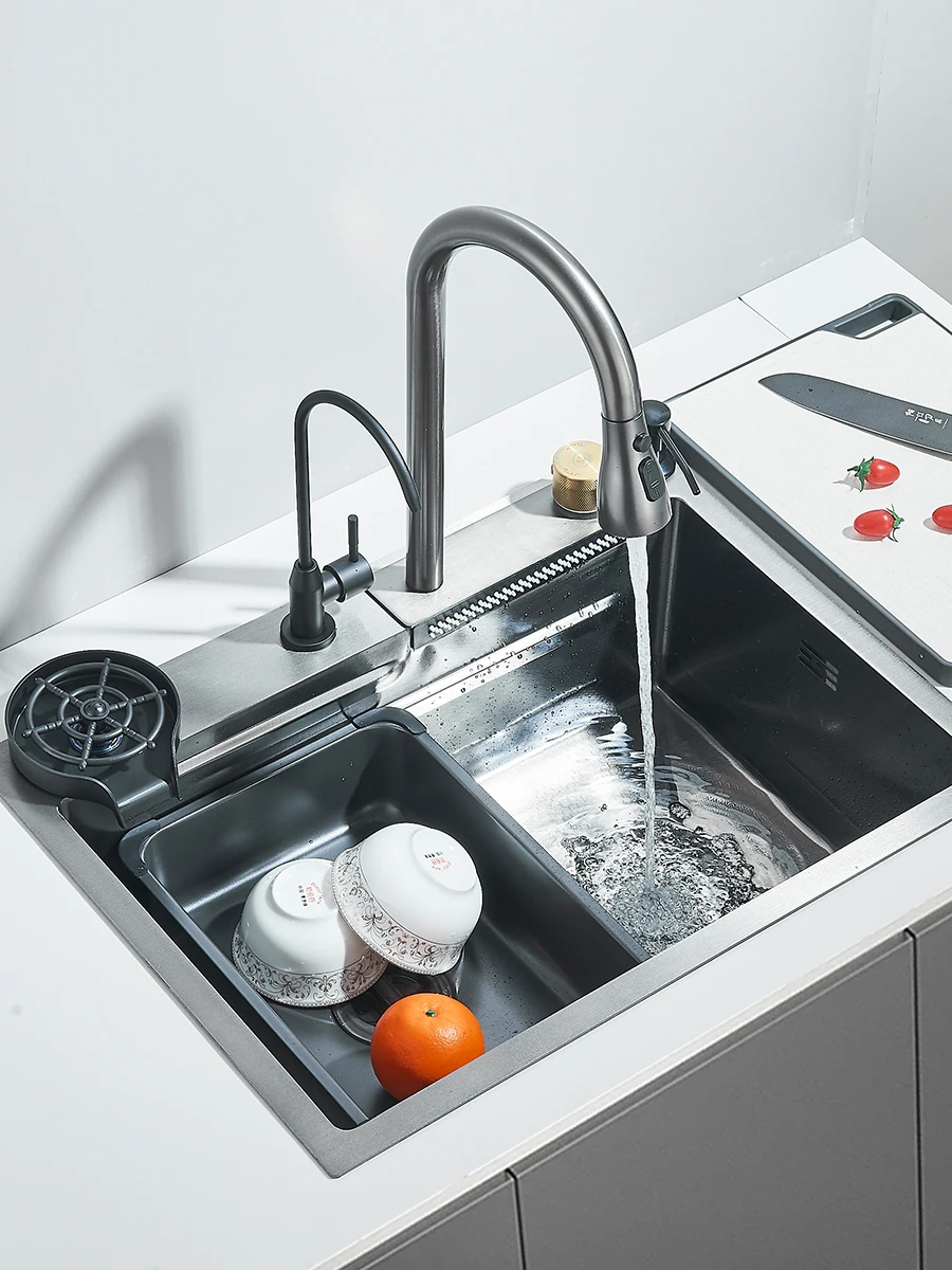 Waterfall Kitchen Sink Stainless Steel Sink Large Single basin With Single Slot Sink Above Counter