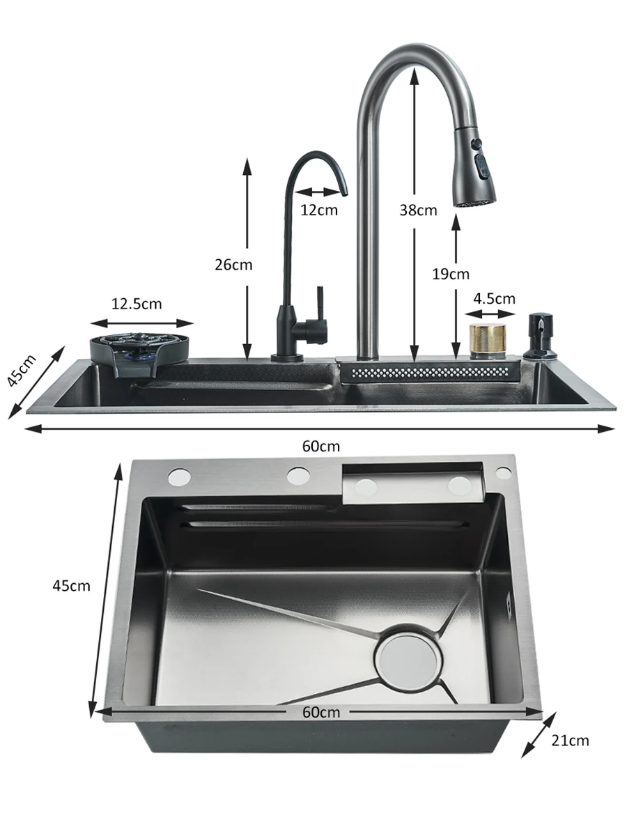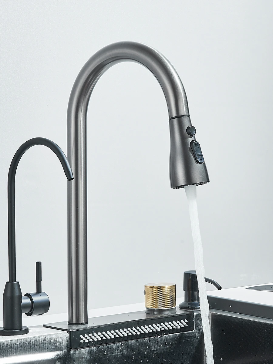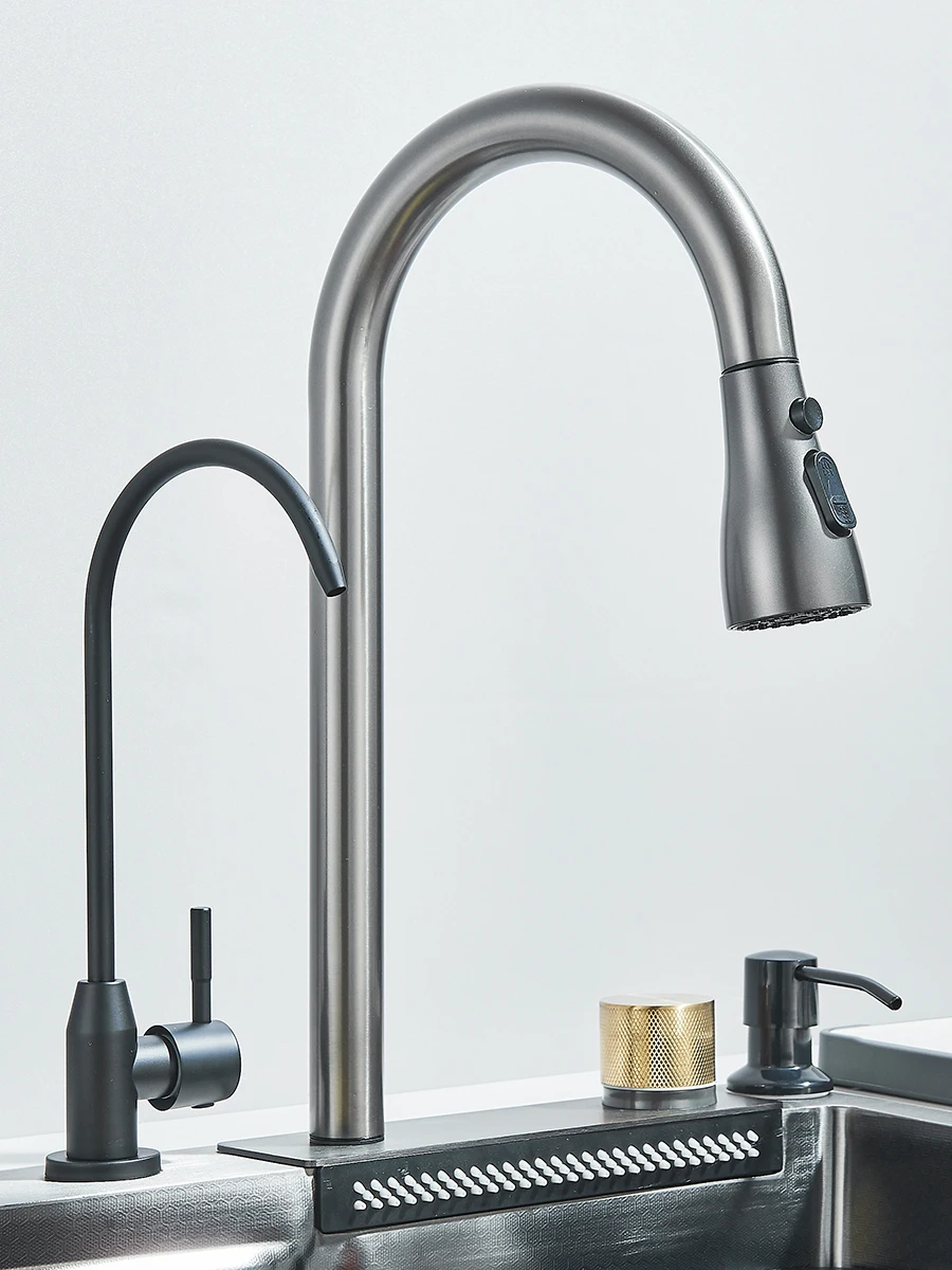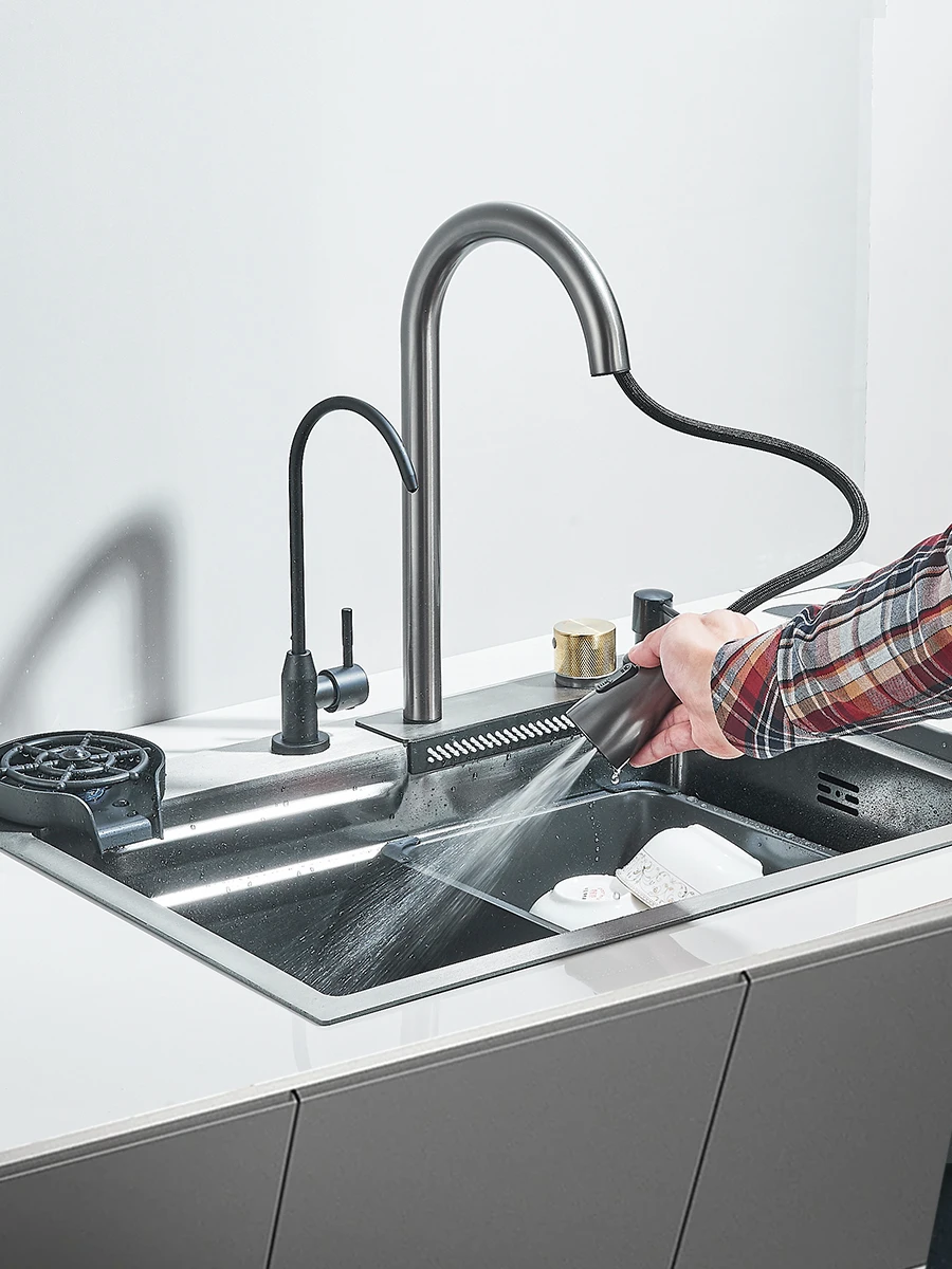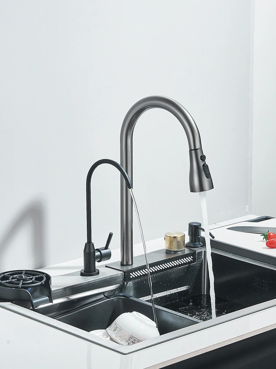 Waterfall Kitchen Sink Stainless Steel Sink Large Single basin With Single Slot Sink Above Counter